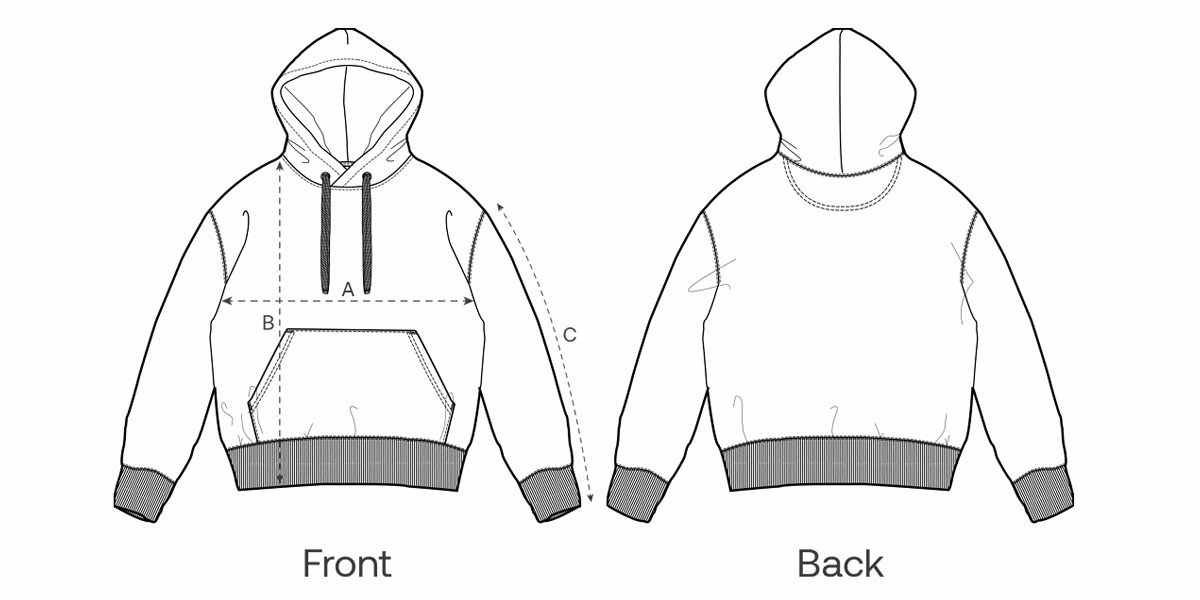 • Einfachabsteppung am Halsausschnitt und entlang der Kapuzenöffnung