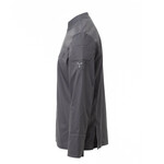 Kochjacke für Herren aus Baumwolltwill und Lycra® T400®, Mandarinkragen, hervorragende elastische und atmungsaktive Eigenschaften. Vorne überlappend mit Druckknopfleiste. Langarm mit Umschlagmanschette, zur Verbesserung der Atmungsaktivität Achselbereich aus angenehmem Mesh-Gewebe. Ikonischer Aufnäher auf der linken Schulter mit gesticktem Propeller Ton-in-Ton und Stifthalter. Brusttasche und praktische Smartphonetasche an der Taille. Vertikale Schlitze im unteren Rückenbereich für mehr Bewegungsfreiheit.