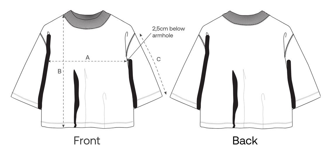 • Doppelabsteppung an Armausschnitten, Ärmelenden und unterem Saum