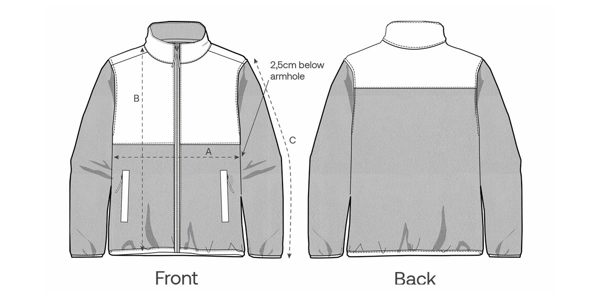Oberstoff: Polar Fleece, 100% recyceltes Polyester, antipilling, aufgeraut.